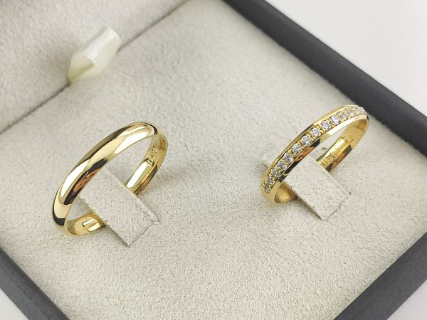 Par de Alianças Tradicionais em Ouro 18k 3mm com Brilhantes