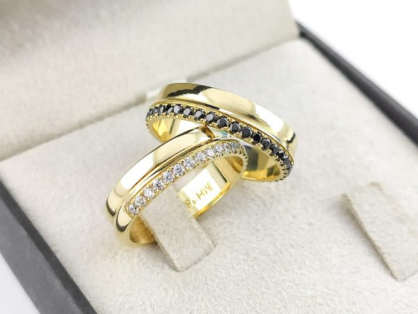 Par de Alianças Tradicionais em Ouro 18k 5mm com Pavê de Brilhantes