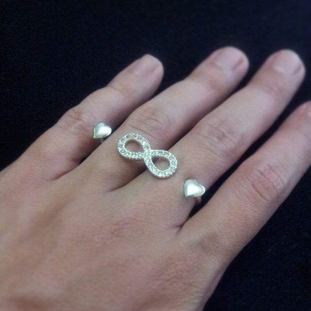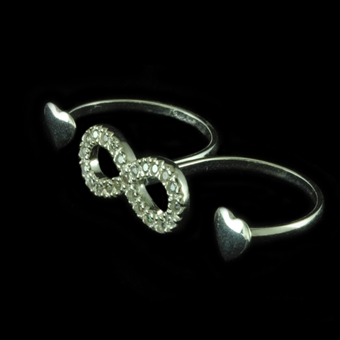 Anel Duplo Infinito e Corações em Prata