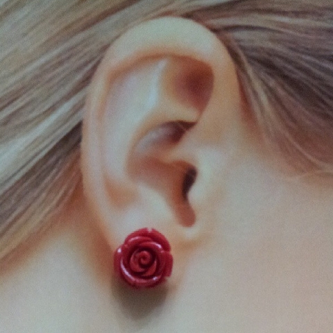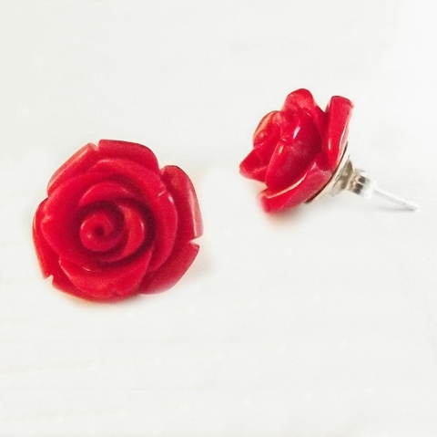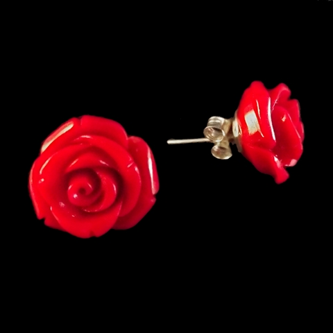 Par de Brincos Pequenos de Prata com Flor de Resina.