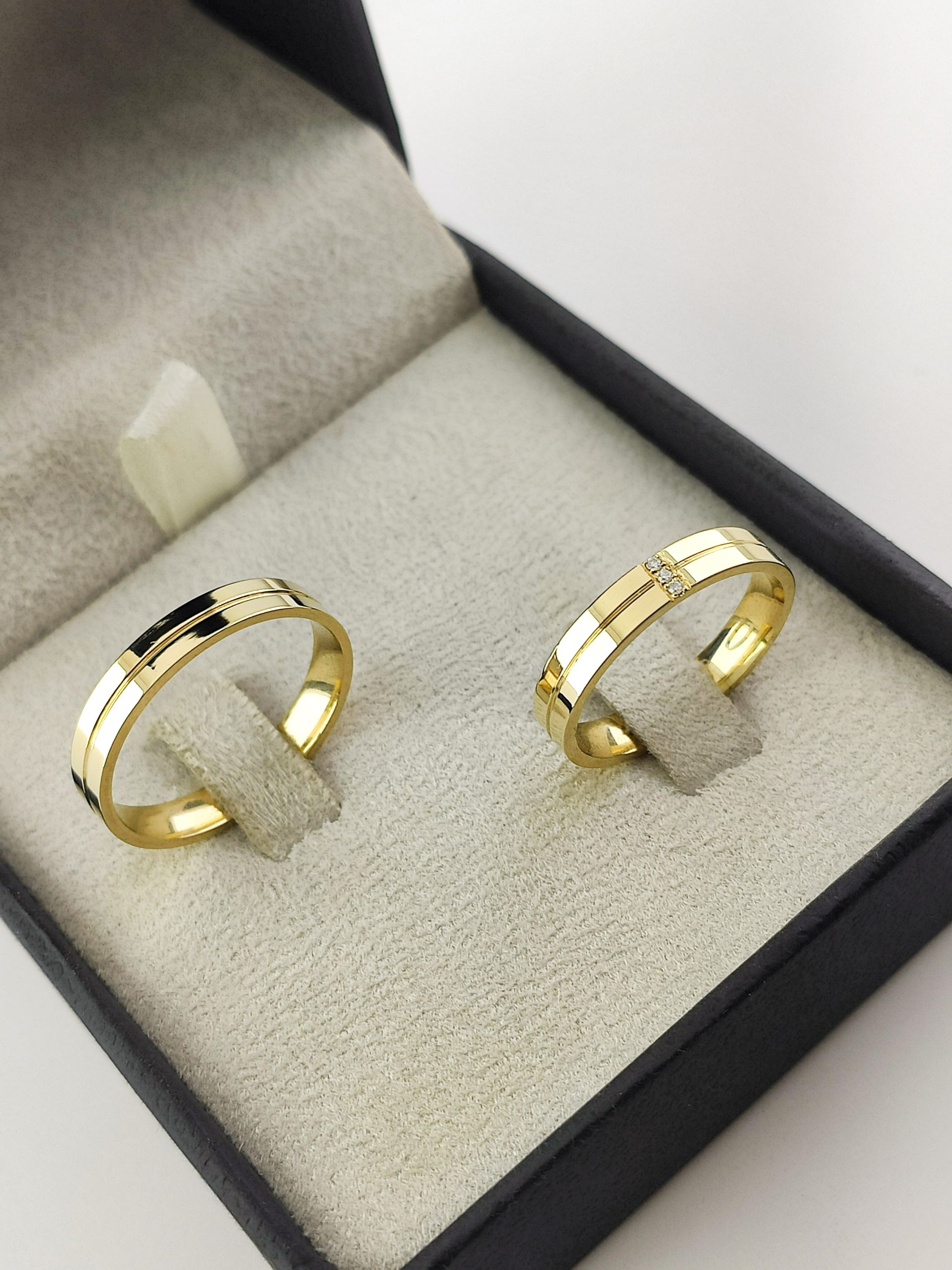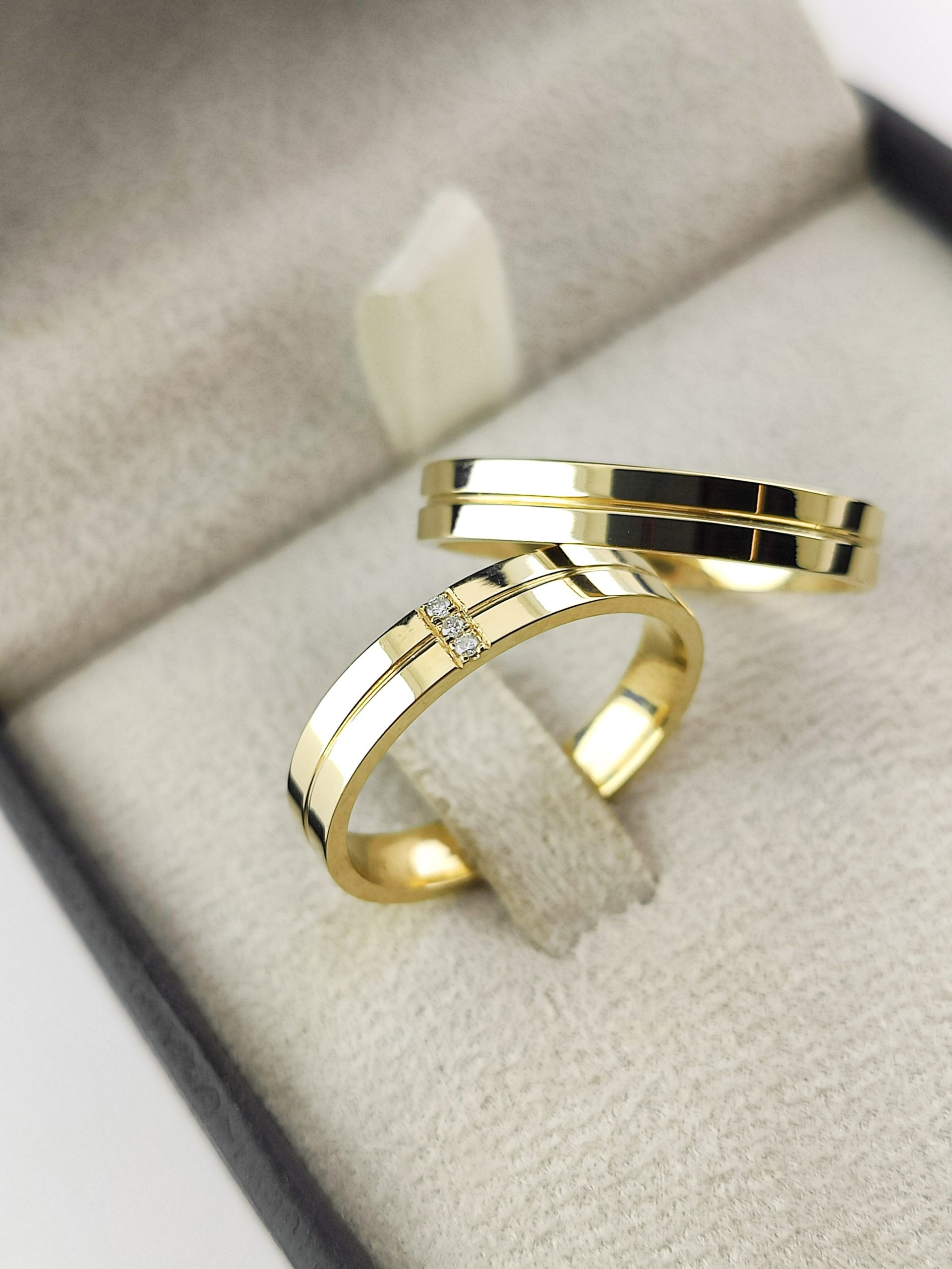 Par de Alianças Retas em Ouro 18k 3.5mm com Três Brilhantes
