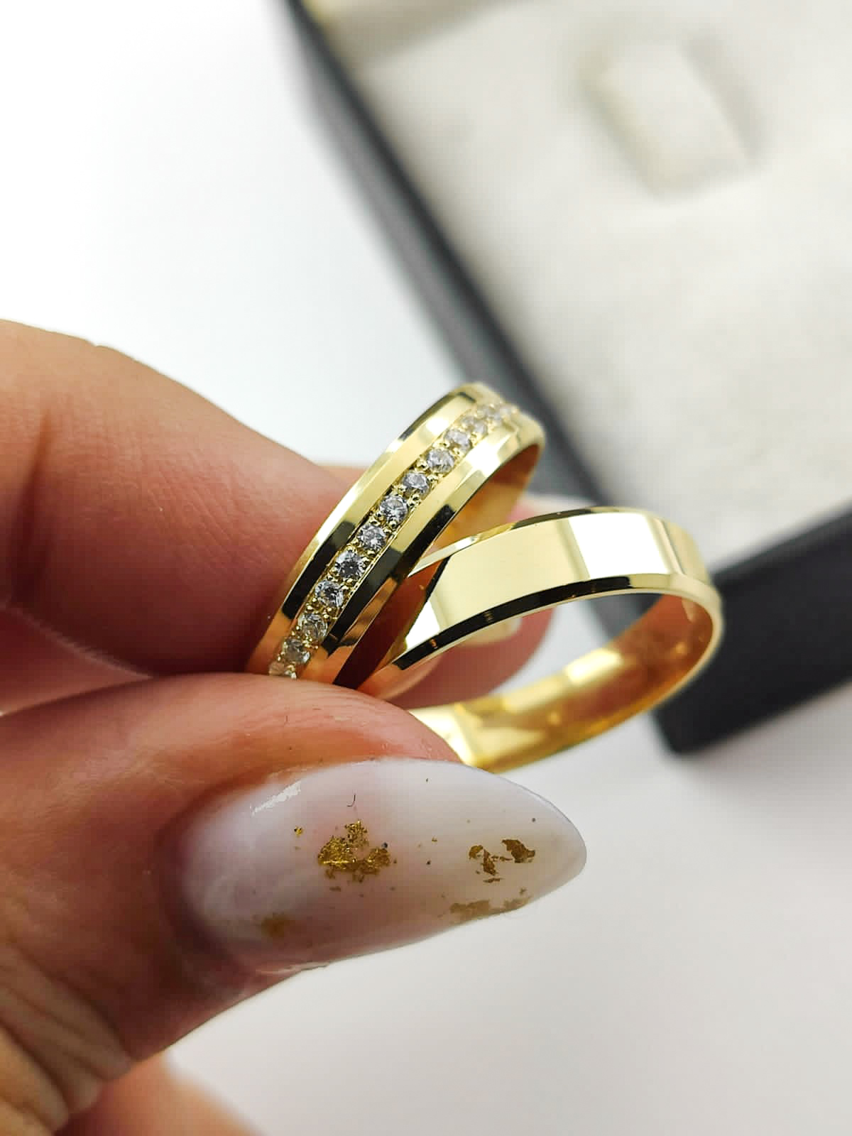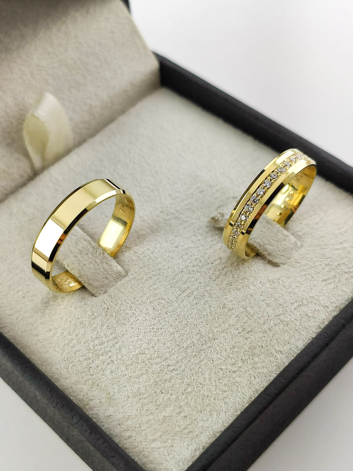 Par de Alianças Retas em Ouro 18k 4mm com Brilhantes