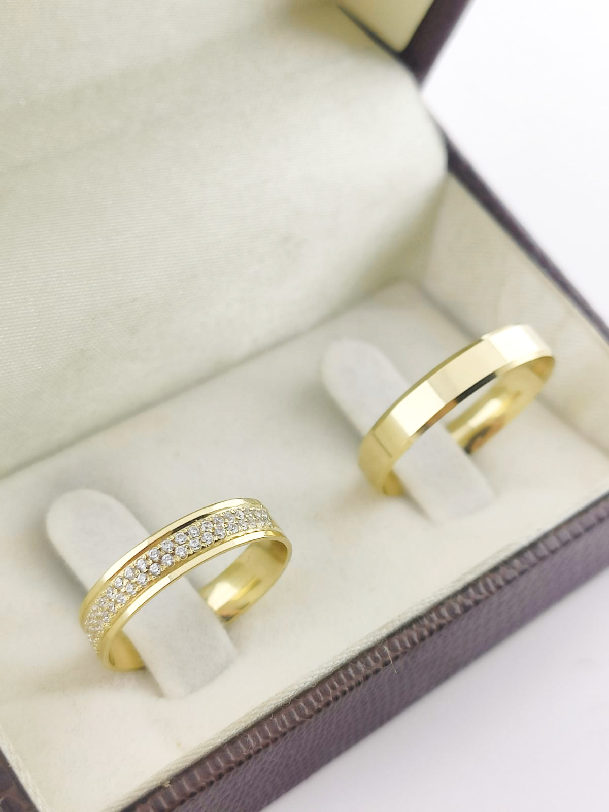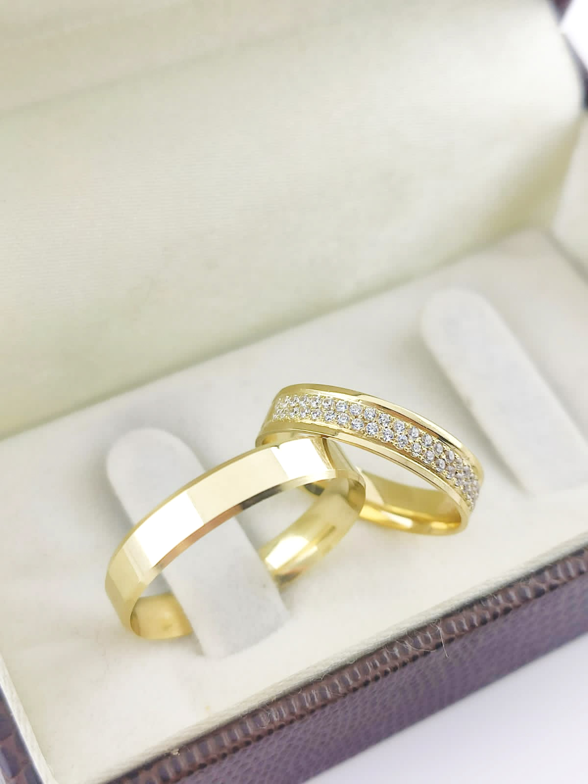 Par de Alianças Retas em Ouro 18k 4mm com Brilhantes