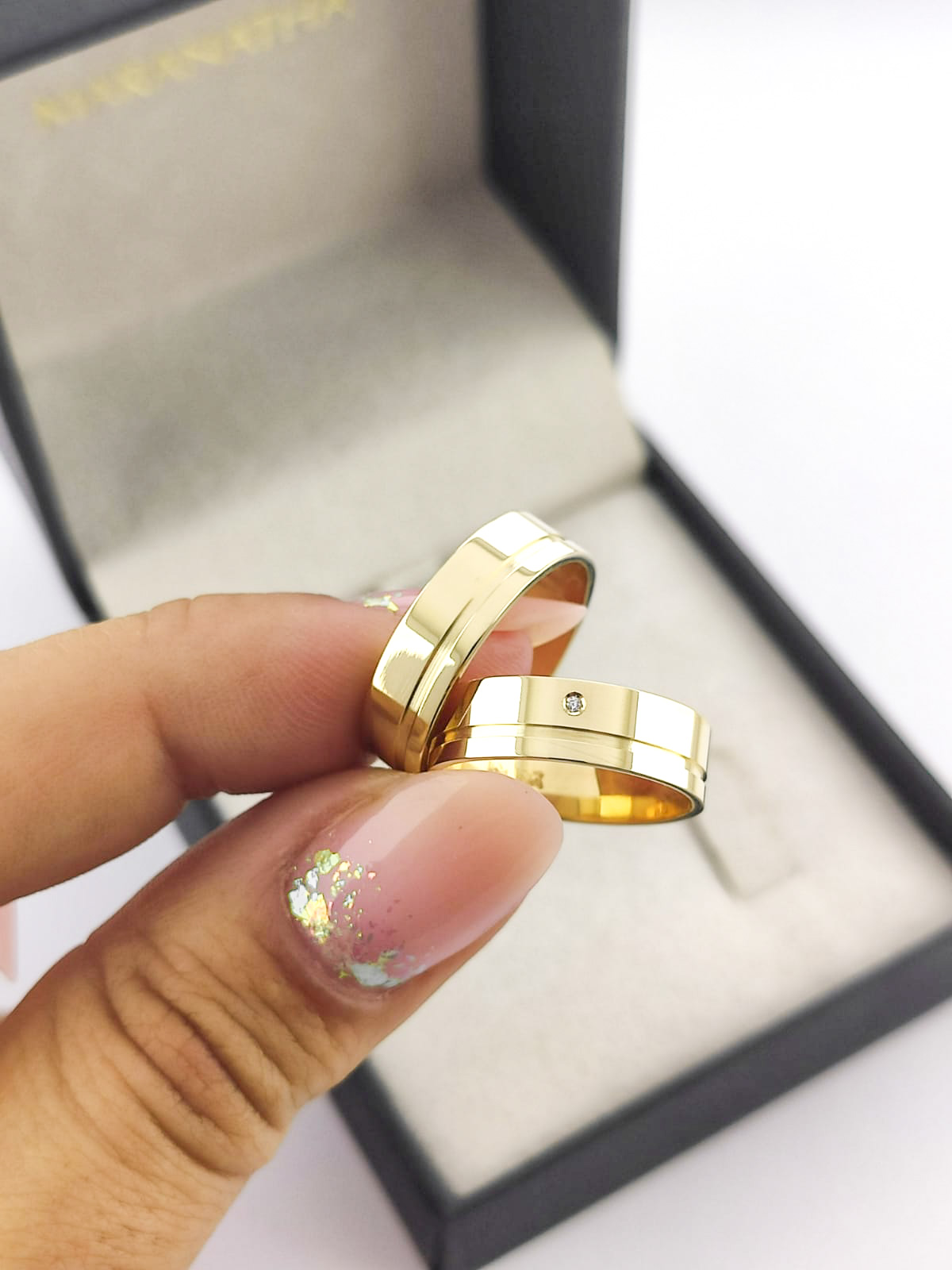 - Cravação: Bigodinho, 1 pedra na aliança feminina