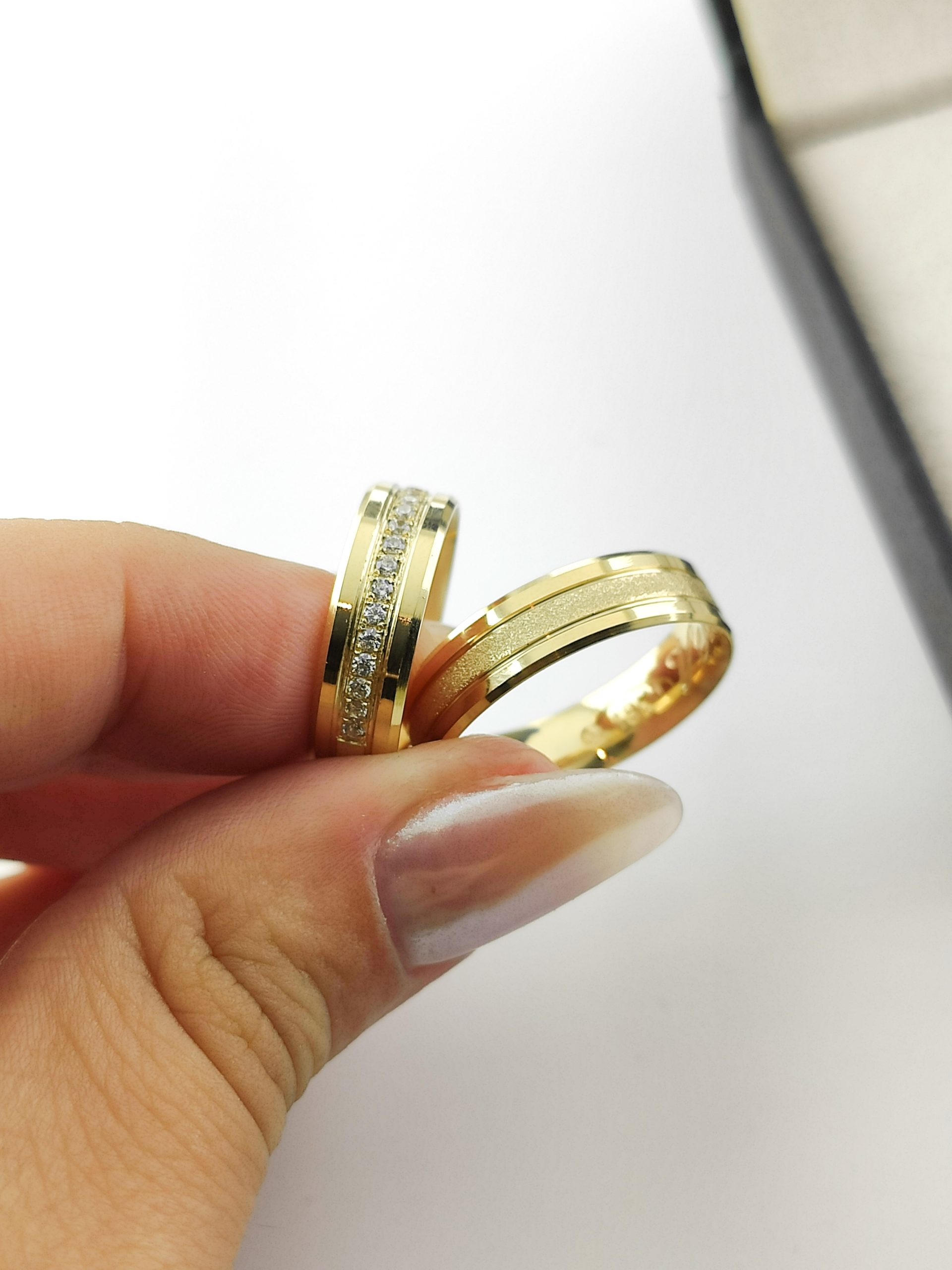 • Cravação: Granito, 15 pedras na aliança feminina