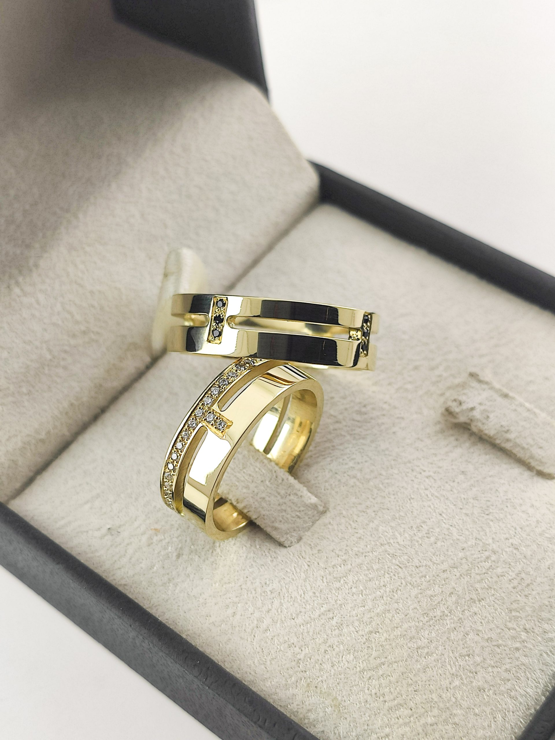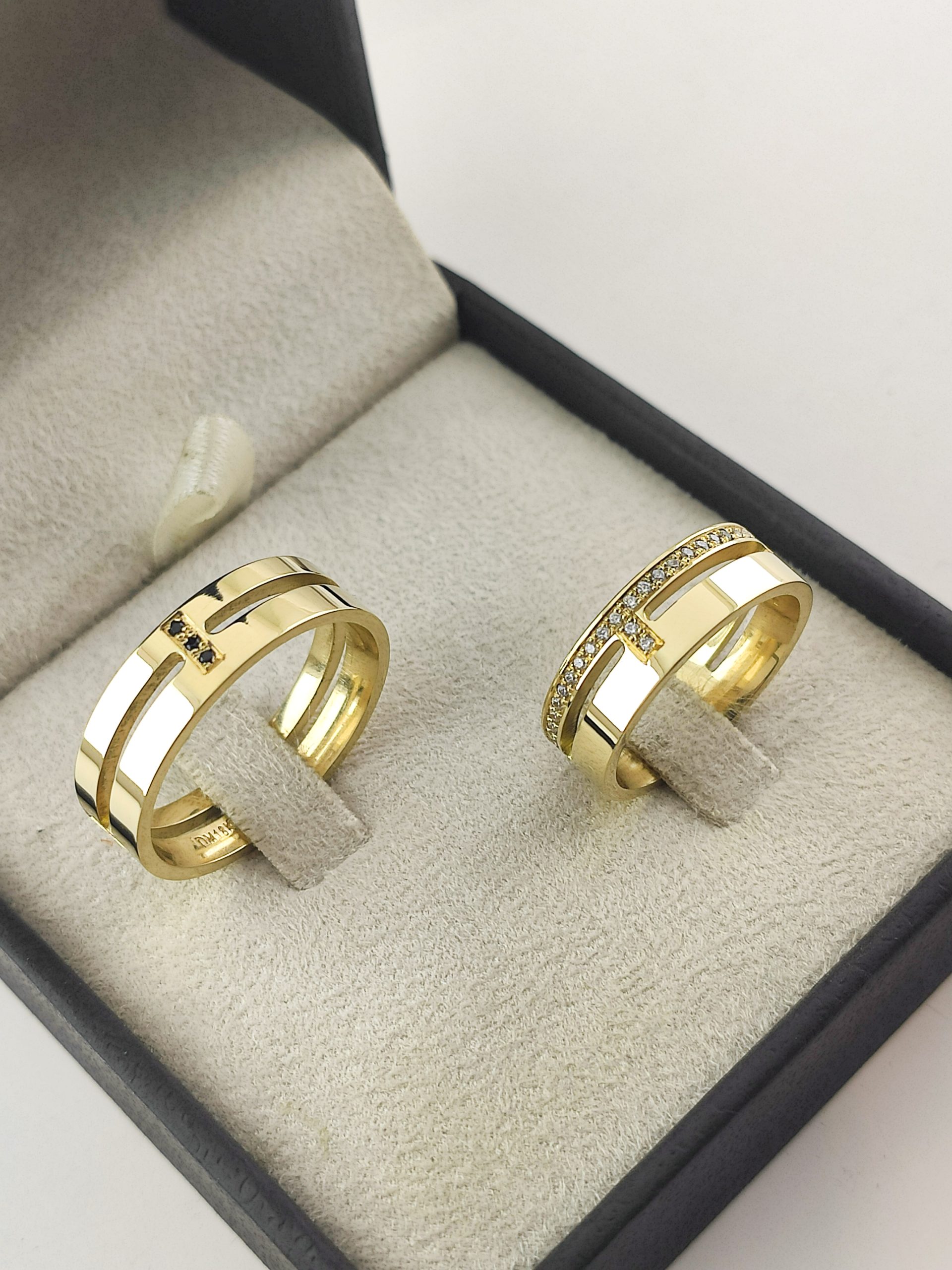 Par de Alianças Retas em Ouro 18k 6mm com Pavê Exclusivo
