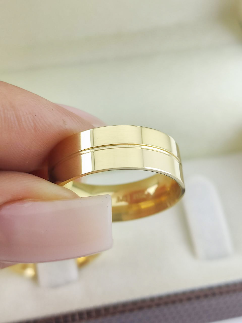 Par de Alianças Retas em Ouro 18k 7mm com Brilho Clássico