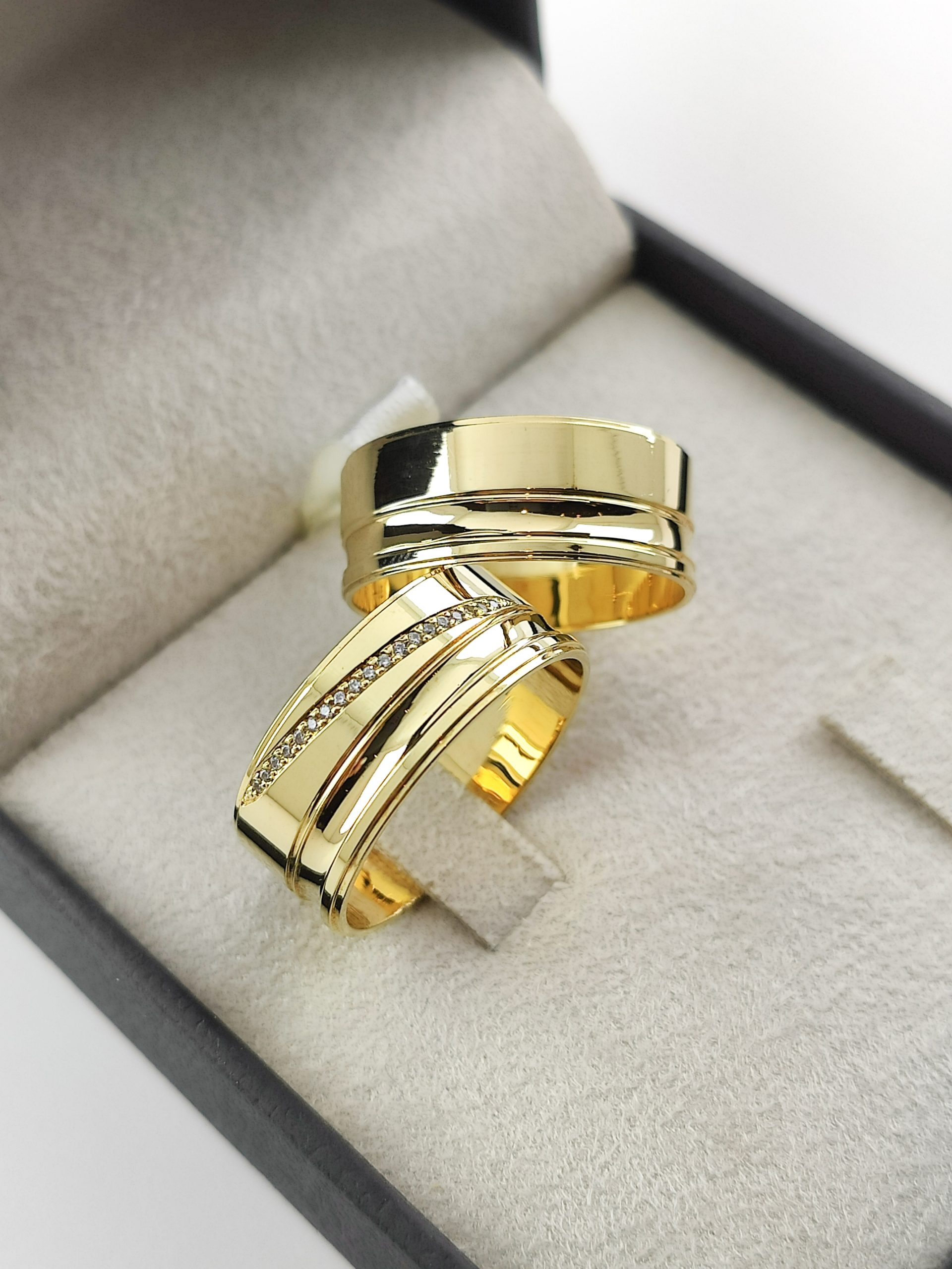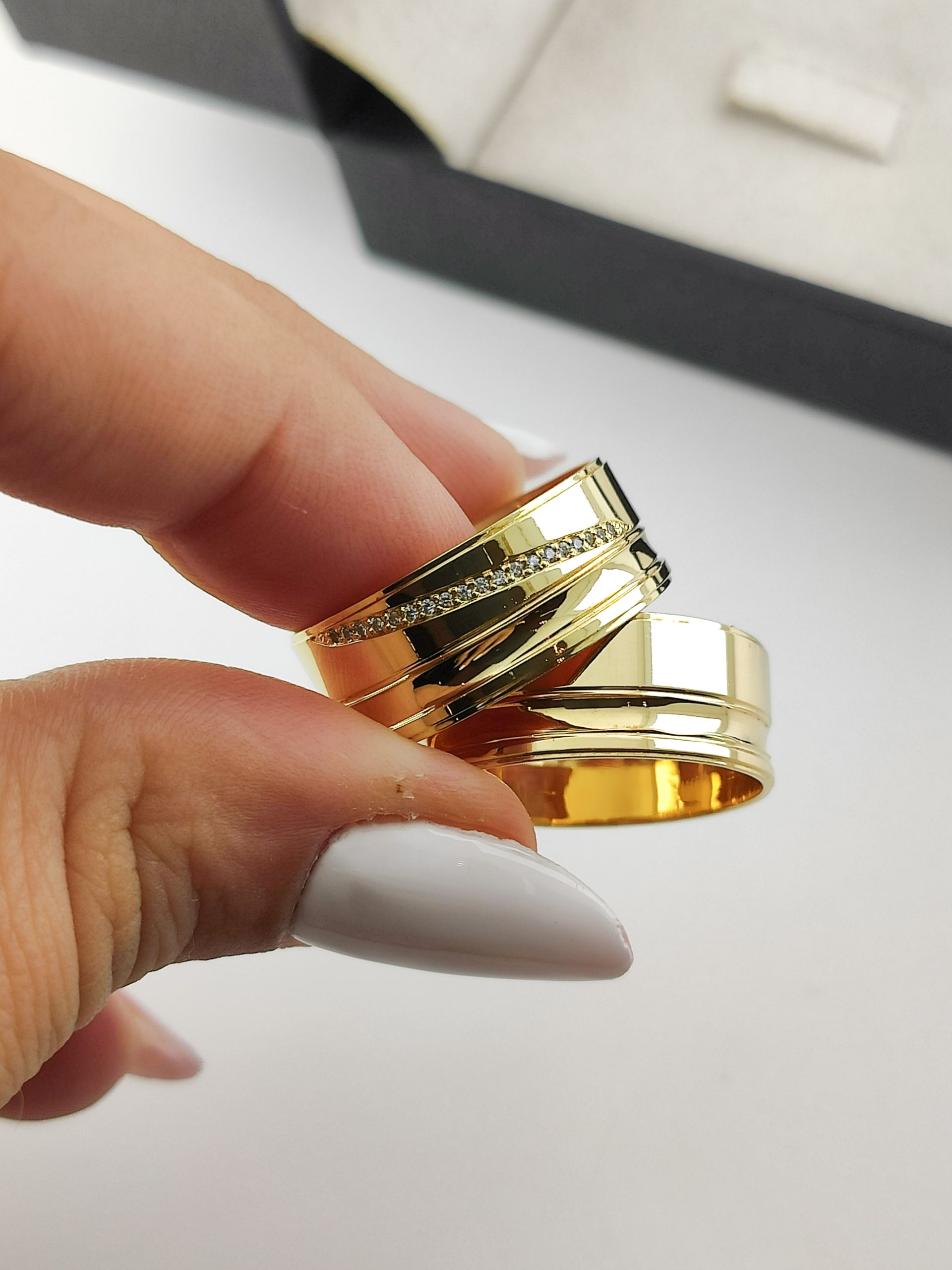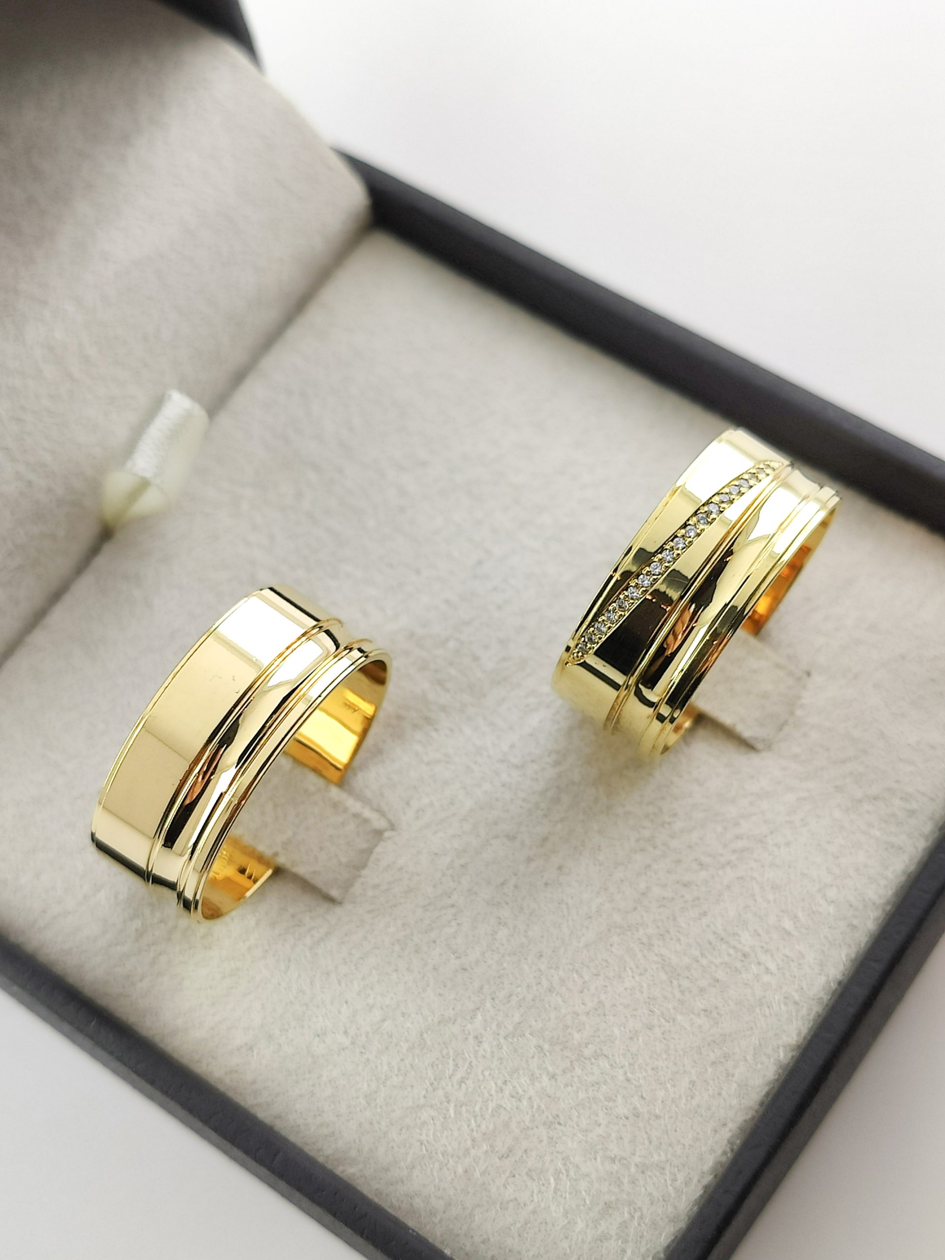 Par de Alianças Retas em Ouro 18k 8mm com Brilhantes