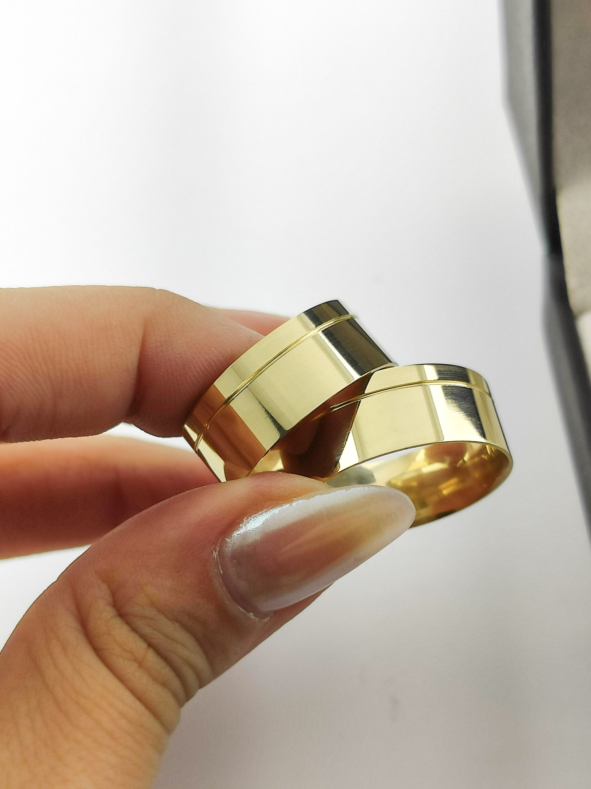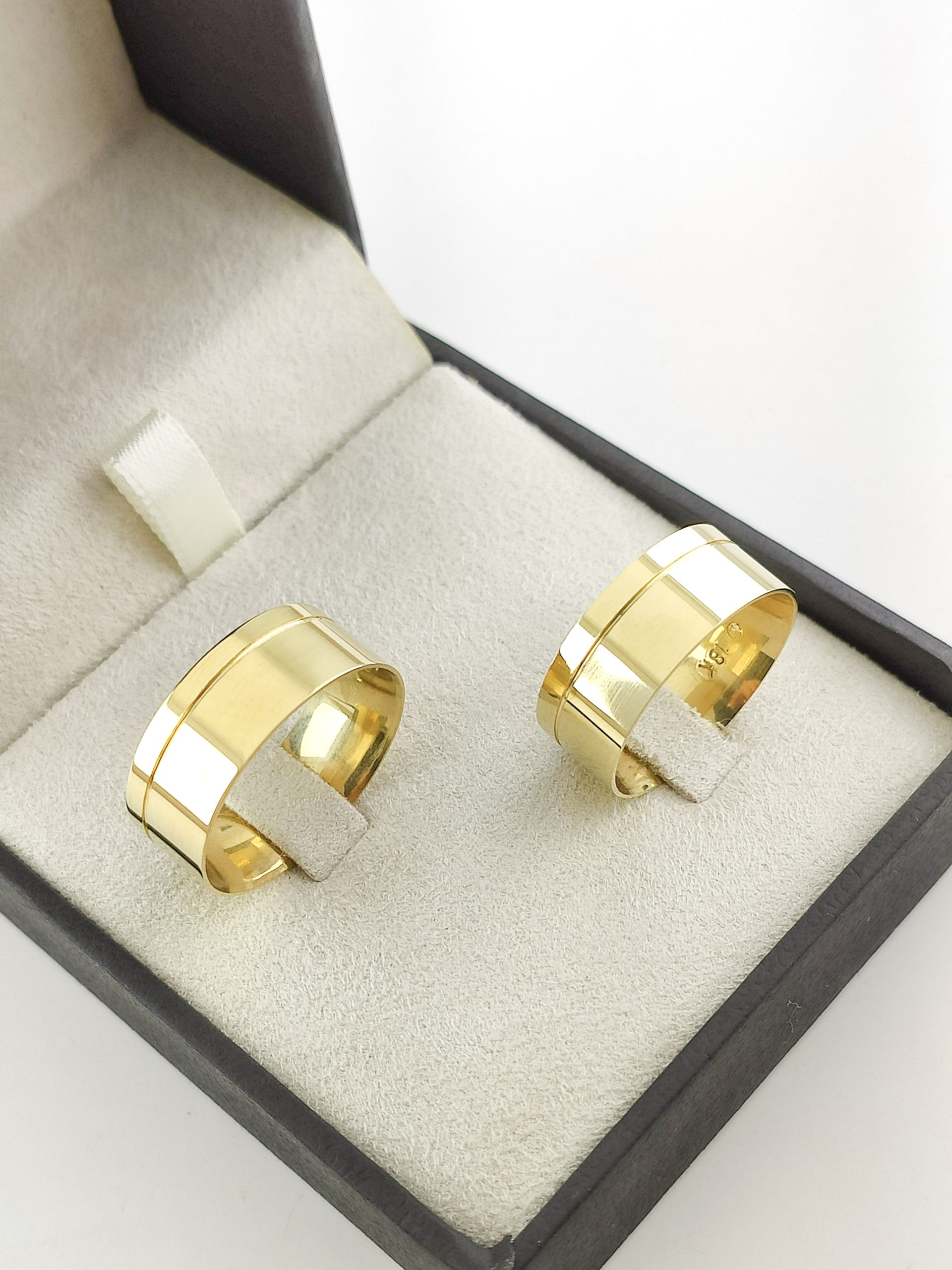 Par de Alianças Retas em Ouro 18k 8mm com Brilho Puro