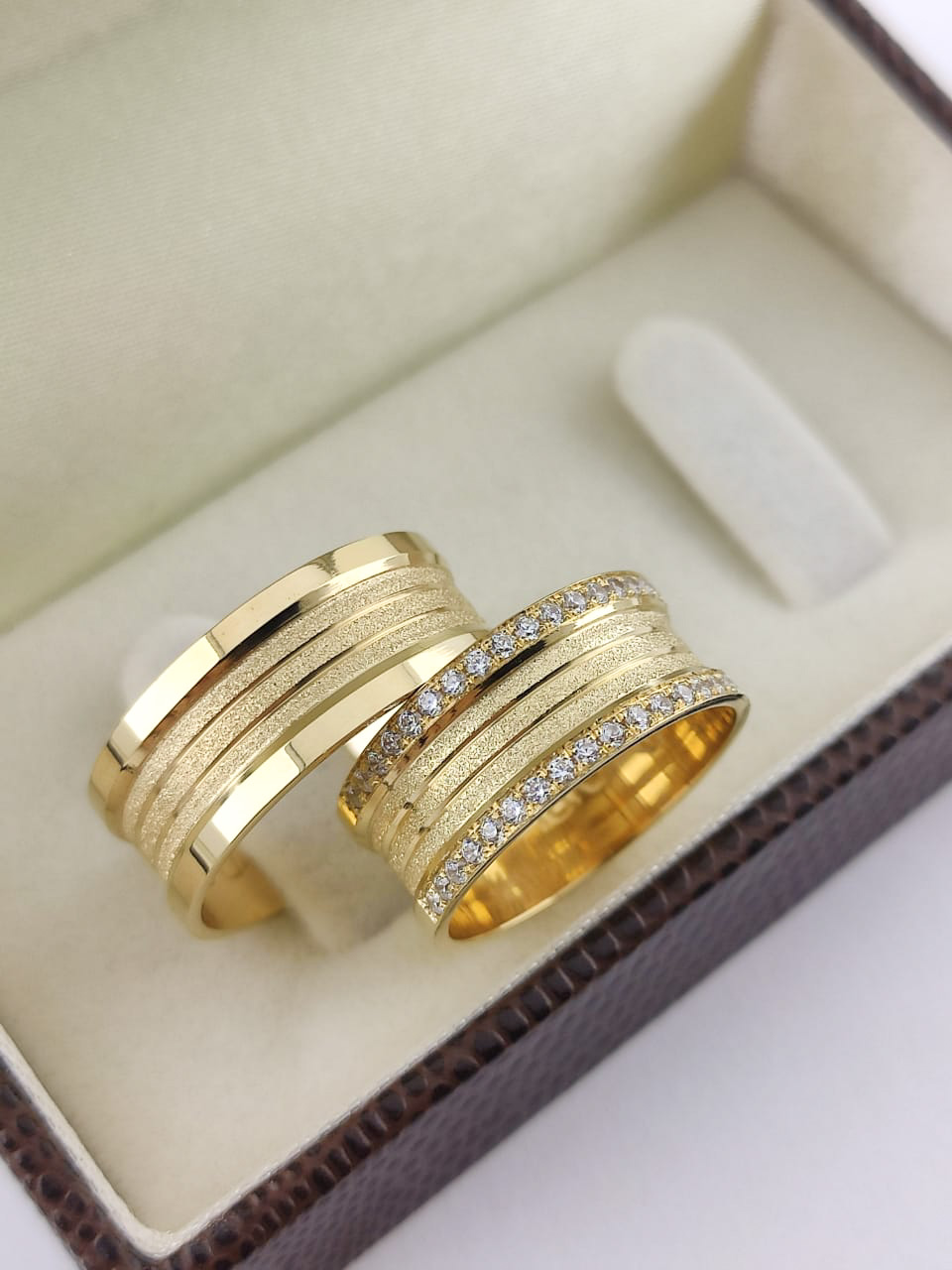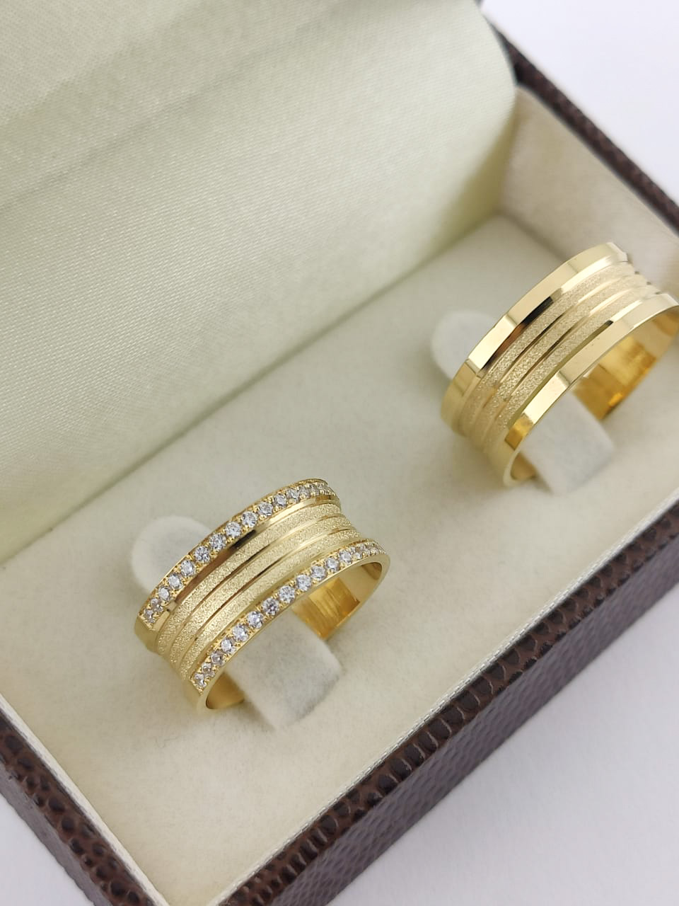 Par de Alianças Retas em Ouro 18k 8mm com Luxo Absoluto