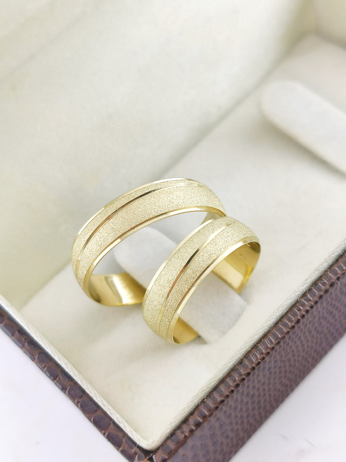 A medida perfeita da modernidade. Com largura ligeiramente ampliada e acabamento diamantado integral, estas alianças são para o casal contemporâneo que busca presença visual sem abrir mão do conforto e do estilo atual.