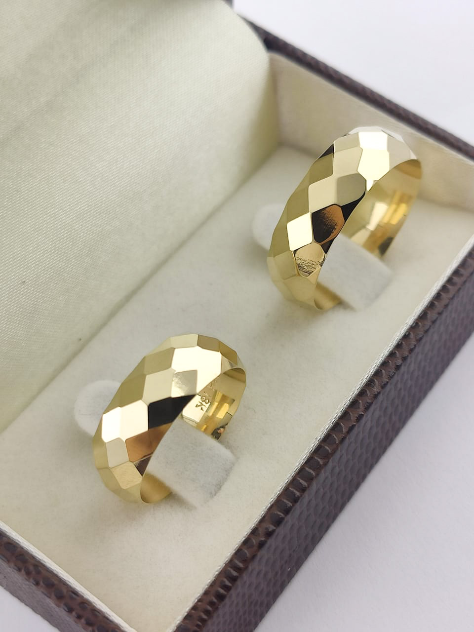 Par de Alianças Tradicionais em Ouro 18k 8mm com Acabamento Diamantadeira