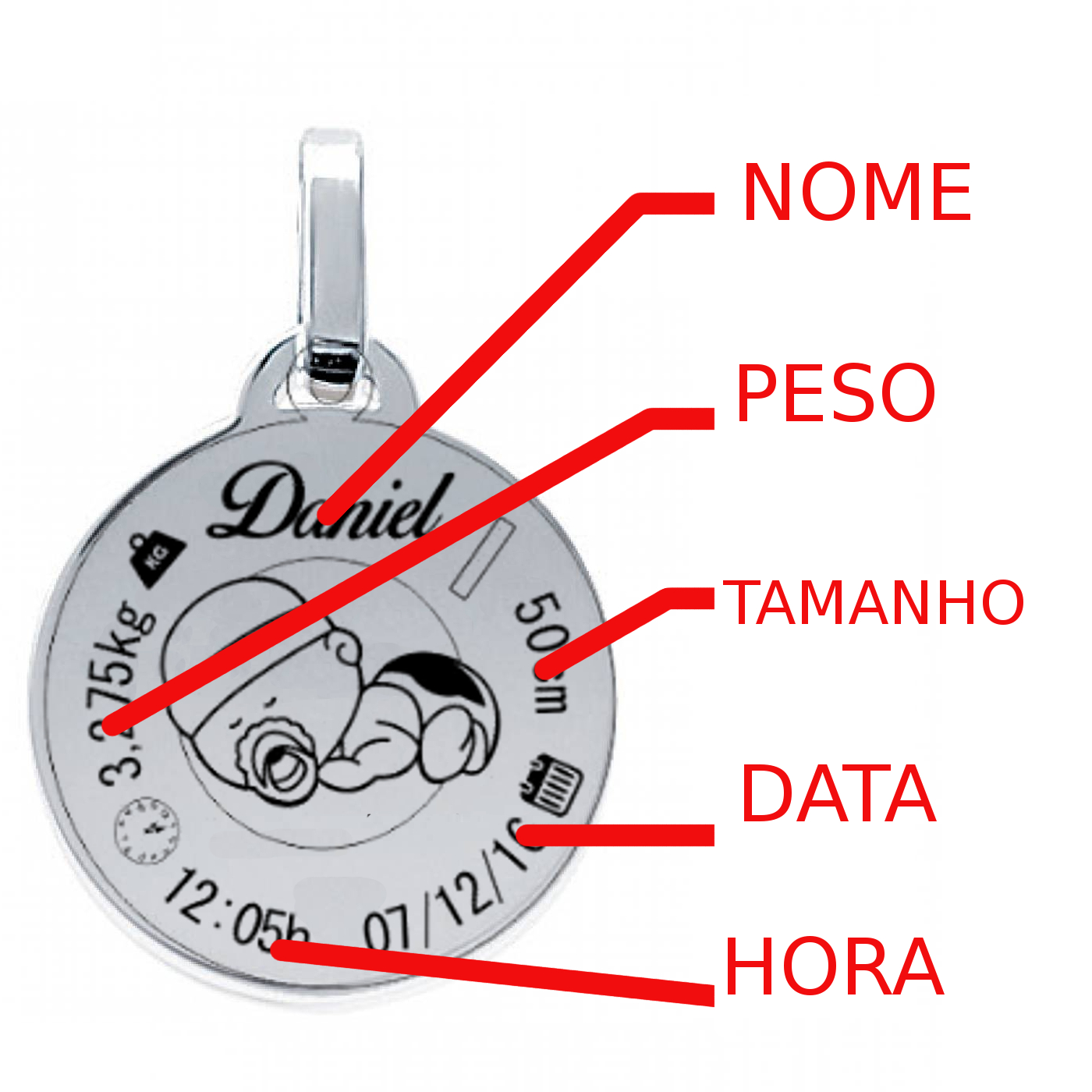 São 2,5 g de ouro em um Pingente de 2,4 cm de Diâmetro.