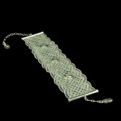 Pulseira feminina Renda em Prata com Flores.
